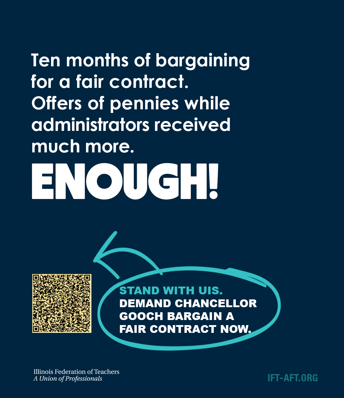 The fight at UIS is happening because our colleges and universities are underfunded. Tell your legislators to pass a fully funded, evidence-based higher education funding model that invests in students, faculty, and campus communities across Illinois. Our students can’t wait.